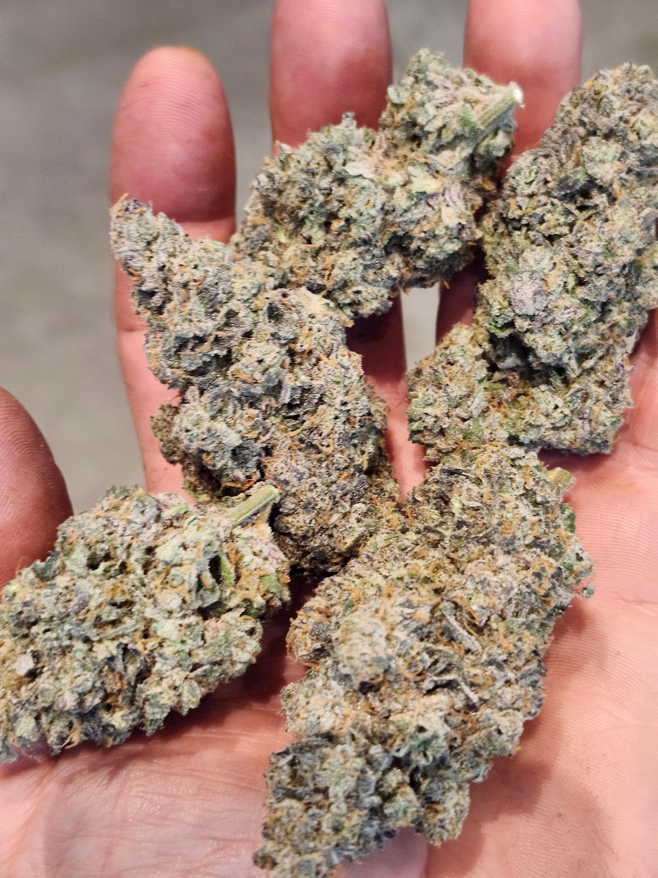 Blueberry Bomb is a slightly indica dominant hybrid strain (55% indica/45% sativa) created through crossing the classic Blueberry X Afghani strains. This celebrity child is a favourite of breeders and patients alike for its super delicious flavour and insanely relaxing high. Like its name suggests, Blueberry Bomb packs an explosion of sweet and fruity sugary blueberry flavours with just a touch of sour citrus upon exhale. The aroma is just as delicious, with fresh ripened blueberries, spicy earth and sharp sour citrus. The Blueberry Bomb hits you with a creeping effect, slowly sneaking into your body before taking hold. It starts with a light tingle in the spine and back of the neck, working its way with warming relaxation throughout your entire body and lulling you into a pretty physical stoned state of pure calm and ease. As your body settles, your mind will begin to follow suit, leaving you feeling tranquil from head to toe and sleepy at times. Combined with its high 29% + average THC level, these effects give Blueberry Bomb an edge in treating conditions such as chronic stress or anxiety, depression, chronic pain and insomnia. This bud has heart-shaped fluffy bright neon green nugs with blue undertones, thin orange hairs and a coating of tiny frosty blue-tinted white crystal trichomes.